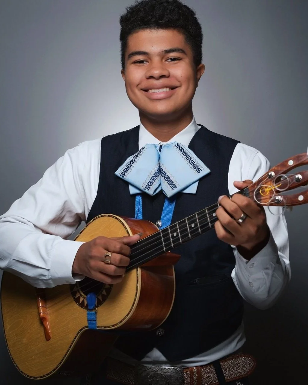 As he transitioned into high school, Xristian successfully auditioned for the award-winning Mariachi Aztlan de Pueblo High School, where he was given the guitarra de golpe as his primary instrument and is currently the section lead of the armonías. Alongside his instrumental talents, Xristian has also been dedicated to becoming a more solid vocalist within Mariachi Aztlan. This commitment led him to become a student of Mr. Moreno, who has been devoted to developing Xristian’s voice over the last two years—a journey that continues into his senior year.